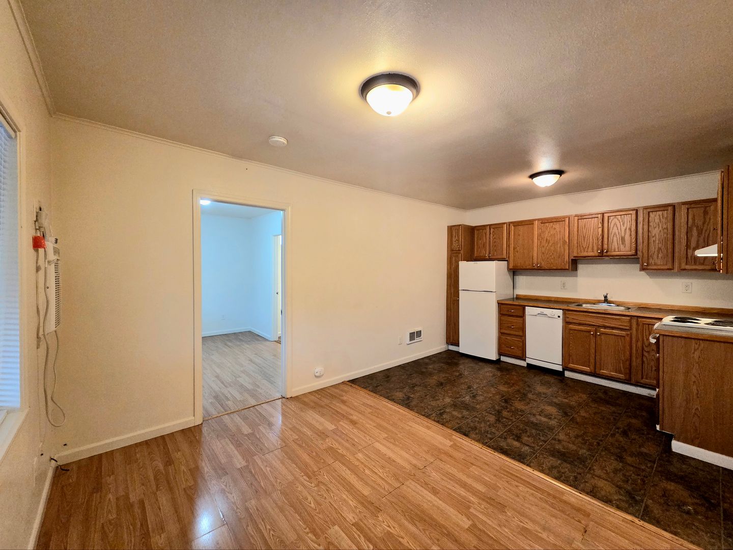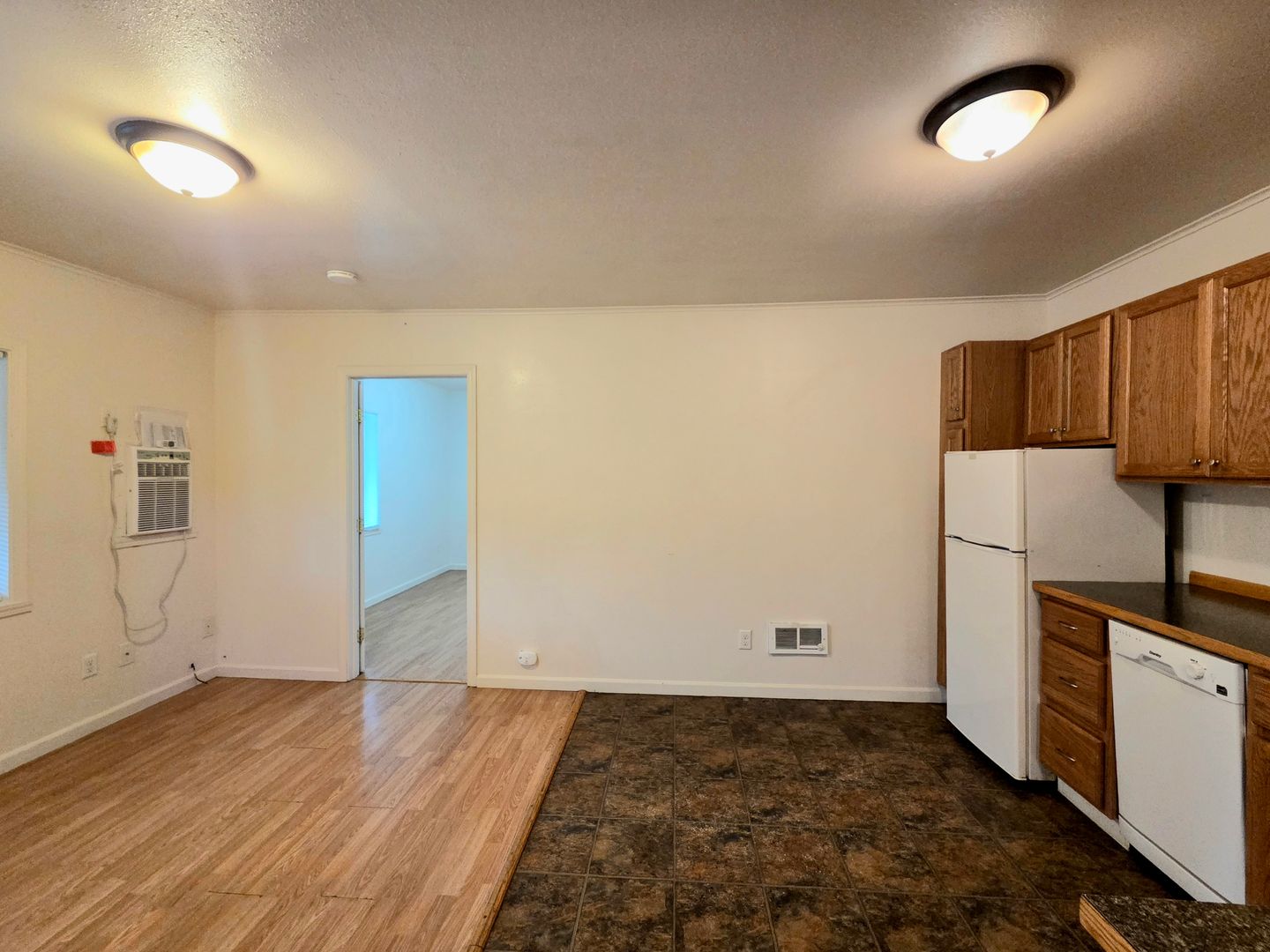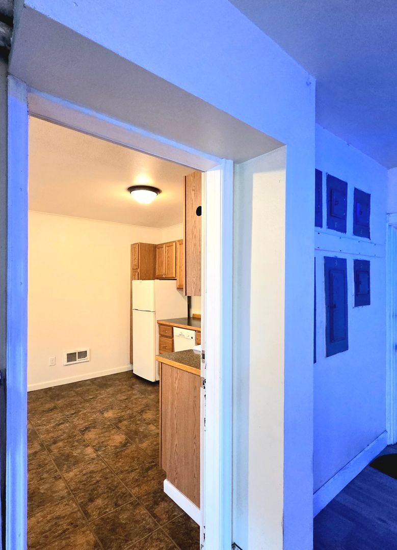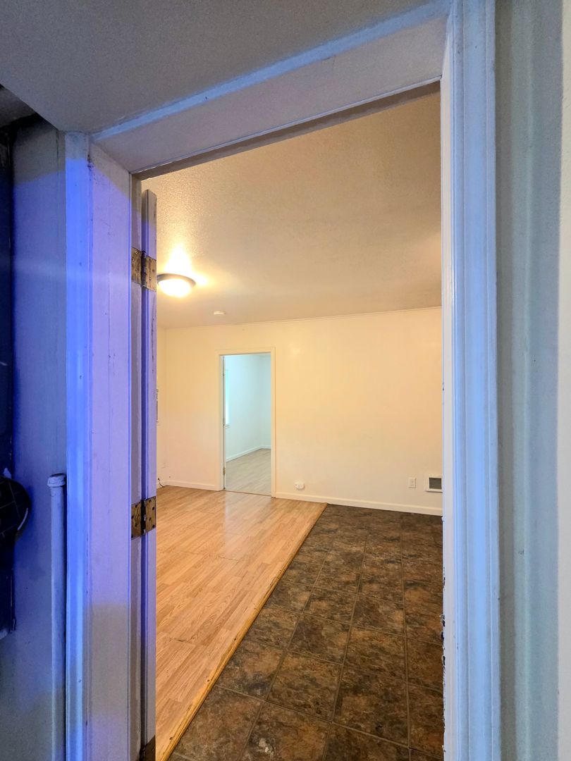 This upstairs, upgraded, cozy, one-bedroom, one-bathroom apartment offers a blend of comfort and style! The unit features beautiful hardwood and vinyl flooring, providing a sleek and modern look. Stay cool during the summer months with the convenience of an A/C wall unit. The appliances in the kitchen make meal prep a breeze.
