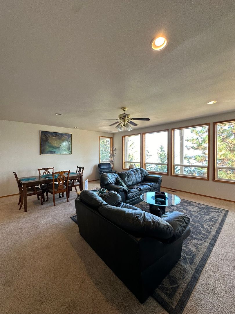 Welcome to this fully furnished 4 bedroom, 3 bathroom home in beautiful Chelan, WA! This home boasts a spacious layout with an amazing view of beautiful Lake Chelan, perfect for entertaining or relaxing. Enjoy the stunning views from the patio or deck, and cozy up by the fireplace on chilly evenings. The kitchen is equipped with modern appliances including a refrigerator, dishwasher, double oven, and built-in microwave.