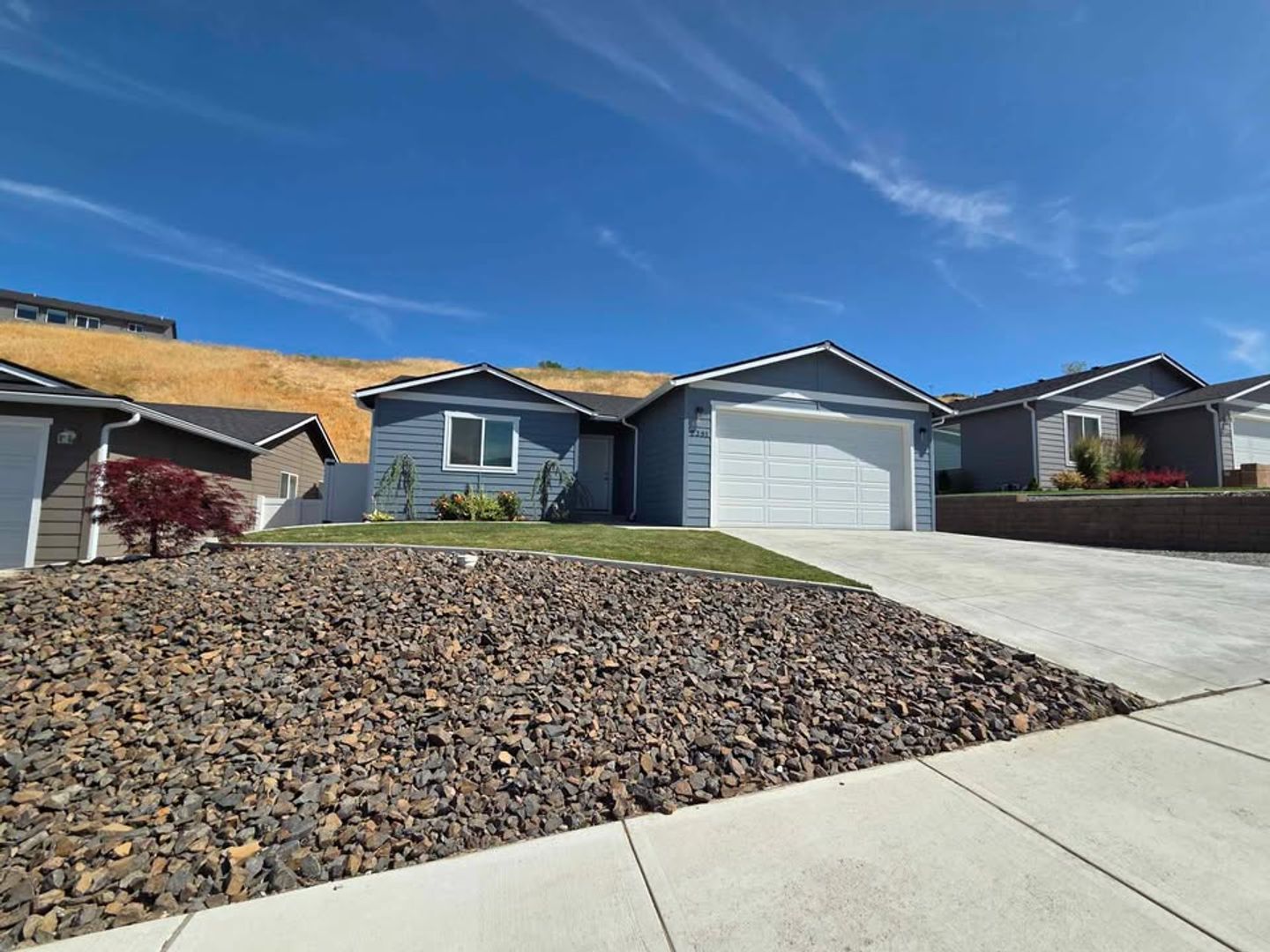 This gorgeous newer build home is in the Sage Brooke neighborhood of East Wenatchee - so close to the river for summer activities - has three bedrooms & two bathrooms with an attached garage. Includes a beautiful kitchen island with enough space all around. Don't worry about buying a washer and dryer because this house has it. Each room has amazing space and great window lighting! Also, enjoy the cutest little fully fenced backyard - a great place for a grill and some chairs to relax in the quiet neighborhood.